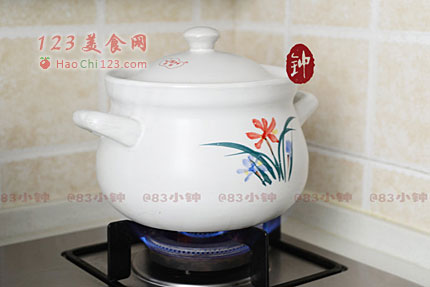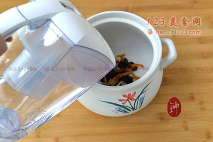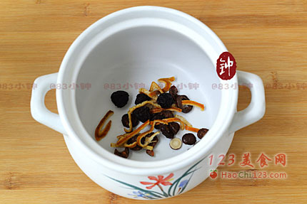 2、把泡好的材料再次用清水冲洗干净,装进砂锅中。