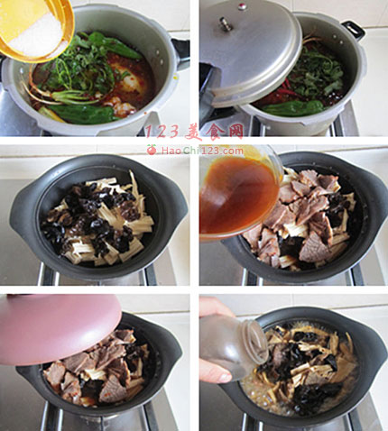 8、盖上盖,大火高压锅阀叫了后转为小火炖煮30分钟,关火,再泡上几个小时。