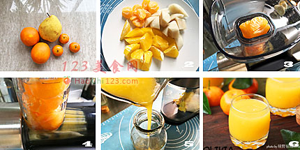 2、将梨、橙子去皮后切成小块;蜜糖桔去皮掰瓣备用。