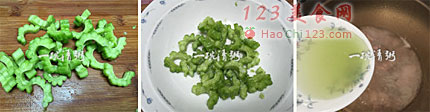 3、因为苦瓜腌制以后碧绿的汁液已经渗出,所以成品菜中的苦瓜没有那么的苦也没有那么的碧绿了。不喜欢吃苦味的朋友也能吃上几口哦![sushi.laoyanhuo.com]