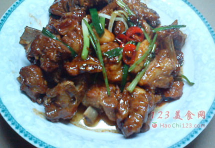 3、煸香排骨后加入适量的生抽,老抽,料酒翻炒均匀,加入没过排骨的水焖煮40分钟,最后大火收汁,撒上葱、香菜装盘出锅啦。
