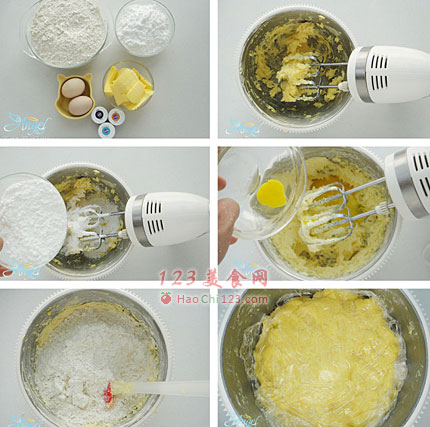 贴士:饼干比较容易糊,烤的时候一定要多观察,不要经常打开烤箱门观察,只需要打开内置照明灯就可以了,时间和温度要根据饼干的厚薄自由调整,擀面的时候上面盖上保鲜膜会比较平整,饼干里的糖粉不可以用细砂糖或砂糖代替,那样烤出来会看到一粒粒未融化的砂糖,影响美观,如果黄油融化过头变成水状了是打不发的,只需要冷藏一会使其稍微凝固即可。[sushi.laoyanhuo.com]