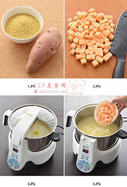 1、小米红薯粥,很家常的吃法,我是用捷赛的“粥师傅”自动锅熬的,火力均匀,熬出的小米粥更粘稠更好喝,但是这个程序要运行90分钟,所以红薯要在最后剩30分钟的时候再放,否则就都煮烂了。