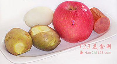 2、土豆入高压锅中烹熟,后剥皮切小块。