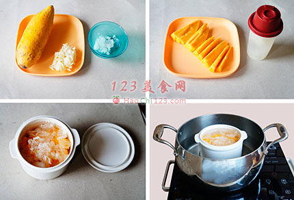 2、炖糖水,炖锅里的水一次性加好,锅里的水要没过炖盅的三分之一为好。[sushi.laoyanhuo.com]