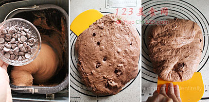 2、面团松弛后取出,在工作台上进行翻面对折动作,完成后再放回面包筒中,第二次加盖发酵约60分钟。