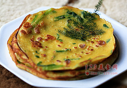 5、小平底锅入一点橄榄油,舀一勺面糊摊成面饼,两面煎黄即可,可加番茄酱一同食之。[sushi.laoyanhuo.com]