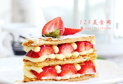 1、拿破仑酥是一道经典的法式甜点。层层酥脆的酥皮与新鲜水果、卡仕达酱的搭配让人欲罢不能。这道甜点做好后,不要存放太长时间,现做现吃最能感受到它的完美。