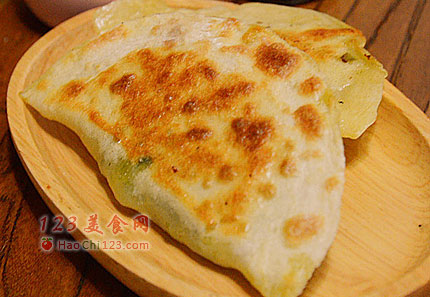 8、平锅加热,放入韭菜盒文火慢慢煎至金黄,或者有冰花状,反面继续煎至金黄。几分钟即可。