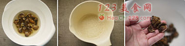 3、泡发干松茸切丁。
