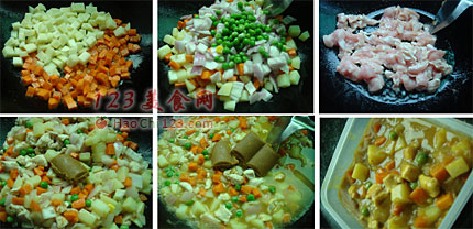 3、多做一些,装入保鲜盒,放入冰箱。麻麻不在家,大孩子自己用电锅焖些米饭,或剩饭,浇上咖喱鸡,在微波炉叮一下,就好。上班族自带饭,也不错呵![sushi.laoyanhuo.com]