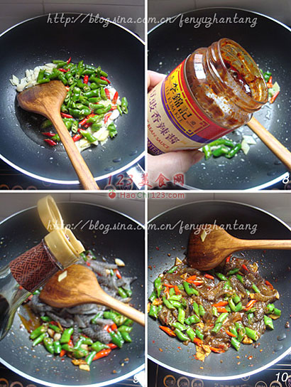 7、下青红椒翻炒。