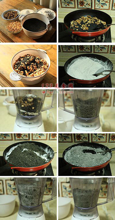 10、这样可以磨得更细,也可以让花生核桃芝麻粉和糯米粉混合得更好。