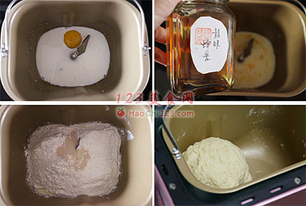 21、将面包机桶放入面包机中,开启烘焙模式,烤焙时间50分钟,中烧色。