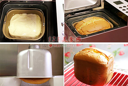 23、蛋糕吐司从面包机桶中取出,黄金面包桶不沾不黏,蛋糕吐司可轻易取出,完成。