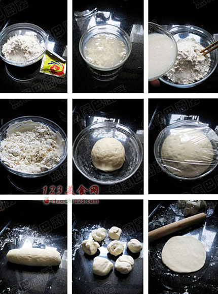 9、用擀面杖擀薄成中间厚周围薄的圆面片,就可以包肉馅了。