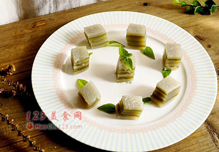 9、蒸好后的九层糕放凉切成块就可以吃啦。