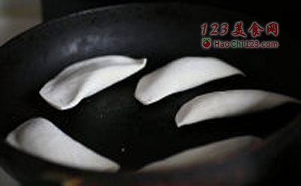 6、平底锅,将菜肉盒子入内,用小火加锅盖两面炕,熟后关火。