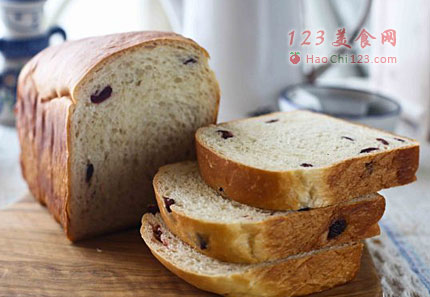 2、蔓越莓来自北美,抗氧化,美容养颜,抗老化,能够保护心血管,对女性特别有益,酸酸甜甜的口感,放在面包里能提高面包的风味。我喜欢用朗姆酒泡一下,放在蛋糕或者面包里,不但颜色好看,味道更是棒棒的。[sushi.laoyanhuo.com]