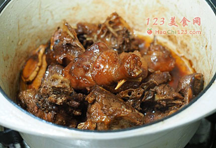 3、一般炖肉类,盐都是最后下,但姜母鸭比较特殊,鸭肉要很入味的咸,所以在煮的过程中就可以下了,如果有时间,提早一天,用盐抹遍鸭子全身腌一天也可以,但盐的用量要多一些,正番鸭皮厚肉厚不入易入味。