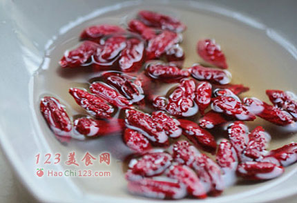 3、枸杞、瑶柱洗净用清水浸泡待用。