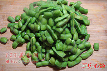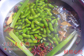 5、然后再放入毛豆,煮5分钟。捞出备用。