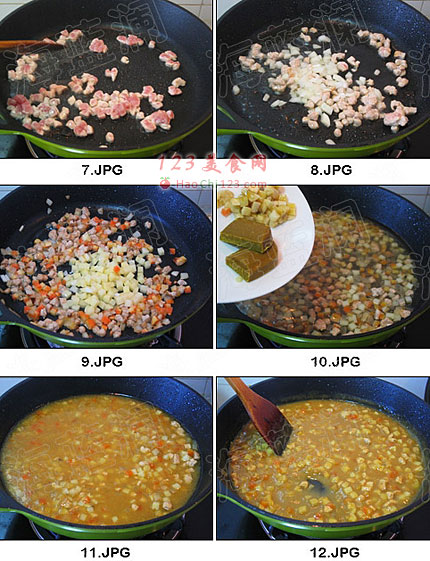 4、用的是咖喱块,里面的滋味很丰富不用再加其他材料了。