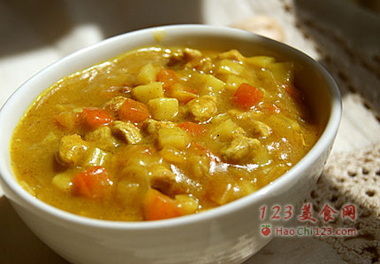 6、咖喱的滋味相当丰富,是来自东南亚的魔幻香料。把它加入菜肴中,便会反客为主,浓厚的味道缠绕舌尖。