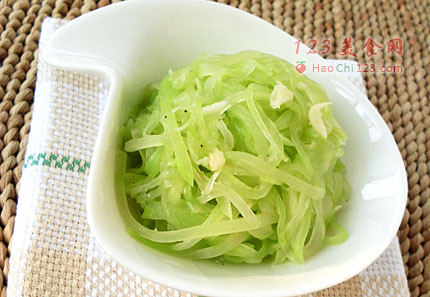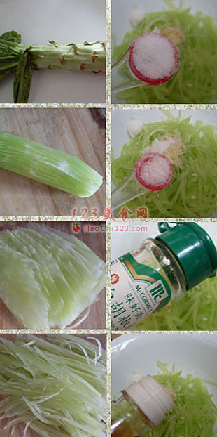 4、捞出莴笋用冷水过两遍凉,这样处理好的莴笋非常清脆爽口。