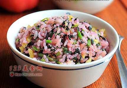 2、苋菜与米饭的比例决定了炒饭颜色的艳丽度,苋菜越多成炒饭颜色越艳丽。[sushi.laoyanhuo.com]