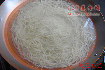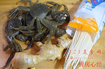 7、在蒸螃蟹的同时,将面条煮到5成熟捞出,不用过凉水。