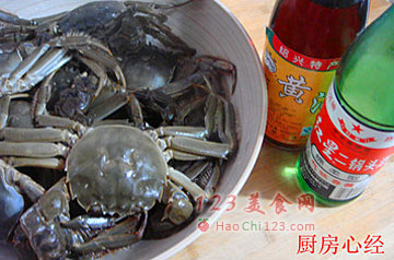 2、河蟹买回家后,直接放入冰箱冷冻1-2个小时,将它们冻昏后,但不要冻死,然后再清洗干净。然后将河蟹放入容器中,这时的河蟹已经苏醒了,倒入大量的黄酒和高度白酒。酒的用量大约在1/3的高度,盖盖焖制,让河蟹个个都喝醉,直到不能动弹。