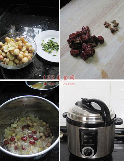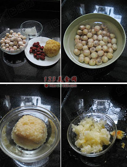 2、莲子一定要泡软,只有泡软的莲子煮了之后才会松酥的口感。