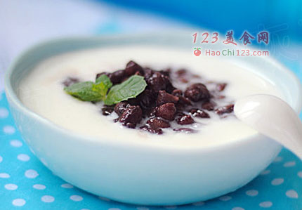 5、最后蜜豆放凉拌入酸奶中,美美的夏日饮品就做好喽![sushi.laoyanhuo.com]
