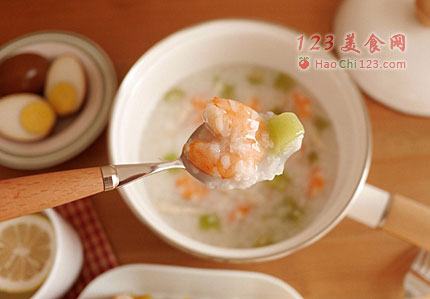 4、如果你用电饭煲煮的白米粥,这时将粥盛入小锅,放在火上,加入丝瓜略煮一会,最后放入汆烫的虾仁和肉丝,搅匀后略煮即可,可随喜好调味。[sushi.laoyanhuo.com]
