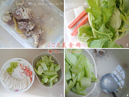 5、6、煮至大芥菜软熟时,再放入年糕。