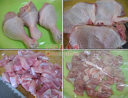 1、其实最好用整鸡,剁成小块后来操作。我不会剁,所以觉得鸡腿方便。