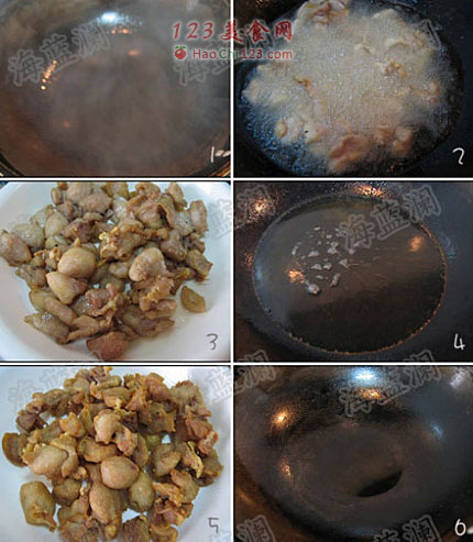 1、1-3图,锅中倒入足够的油,要烧的非常热。倒入鸡块,炸至鸡块表面成焦黄,捞出。