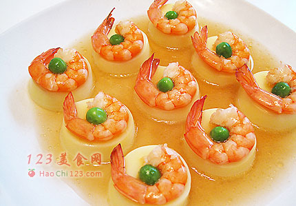 9、有点小造型的玉子虾仁就可以上桌待客了。