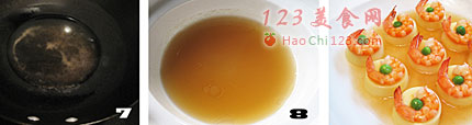 8、把芡汁倒入小碗,浇在蒸好的玉子虾仁上。