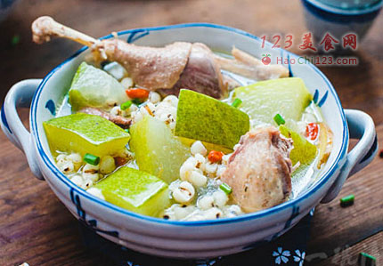 3、冬瓜与其他新鲜蔬菜相比有较丰富的维生素C,钠的含量却比较低,不含脂肪,属于清淡的食材,有清热祛暑、利水消肿、解毒减肥的功效,是清热利尿的佳品。冬瓜薏米煲老鸭,营养丰富,汤汁鲜美,冬瓜清热利尿,薏米祛湿健脾。[sushi.laoyanhuo.com]