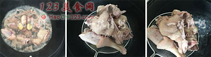 12、锅内重新加入适量的清水,大火烧开后放入鸭块。