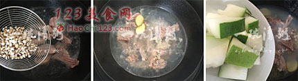 13、14、再放入薏米和姜片,大火烧开后转小火煲30分钟。