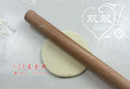 4、将面团搓细,揪面剂。擀皮(擀糖三角的皮,和别的不同,要平着擀,这样才会露出厚厚的边哦)。