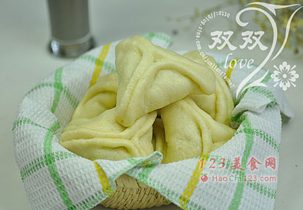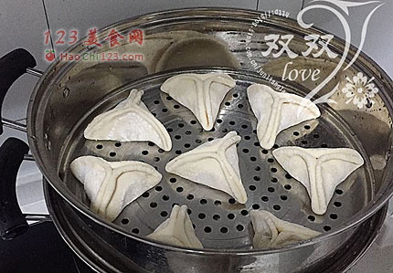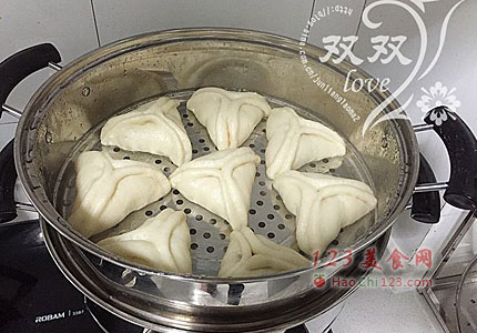 7、蒸锅放水,蒸蓖抹油,将糖三角码入,静置20分钟,醒发(提前码入,可以防止醒发后移动变形)。