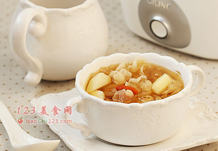 3、银耳、枸杞放入。