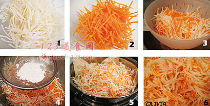 2、胡萝卜半根,洗净去皮切成丝,做成配菜。