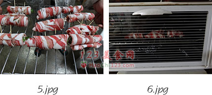 5、6、放在烤网上,入烤箱220度烤大概8分钟左右,中途撒烧烤料和盐调味,出炉后在撒一些烧烤料。