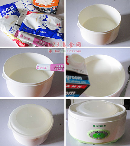 6、将内桶装入酸奶机中接通电源。酸奶机工作6小时候放入冰箱冷藏。