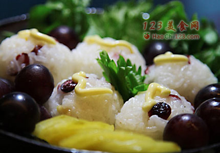 9、每只饭团上,挤一点沙拉酱即可。[sushi.laoyanhuo.com]